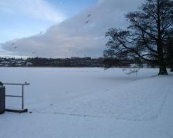 Så blev Nørresø hvid og mågerne kan skimtes i fælleshygge langt ude på isen...
